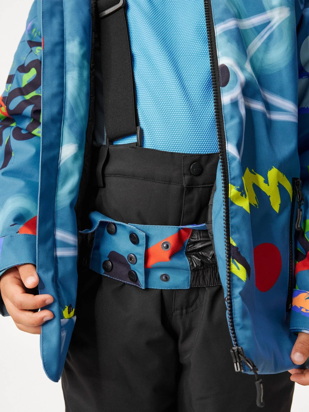 Rukávy s manžetovým zapínáním a sněhový pás brání pronikání chladu, zatímco kapsička na skipas je připravena na každé zimní dobrodružství. Díky pružným nápletům a možnosti stahování v pase bunda roste spolu s dítětem a poskytuje maximální pohodlí. Stejný design navíc snadno sladíte s kalhotami, čepicí i nákrčníkem, takže oblékat děti ven bude rychlé a jednoduché.
