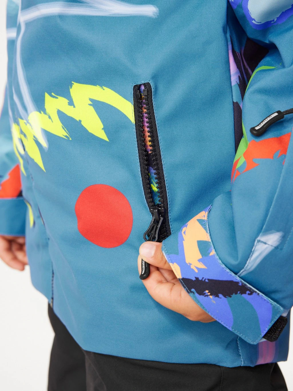 Rukávy s manžetovým zapínáním a sněhový pás brání pronikání chladu, zatímco kapsička na skipas je připravena na každé zimní dobrodružství. Díky pružným nápletům a možnosti stahování v pase bunda roste spolu s dítětem a poskytuje maximální pohodlí. Stejný design navíc snadno sladíte s kalhotami, čepicí i nákrčníkem, takže oblékat děti ven bude rychlé a jednoduché.