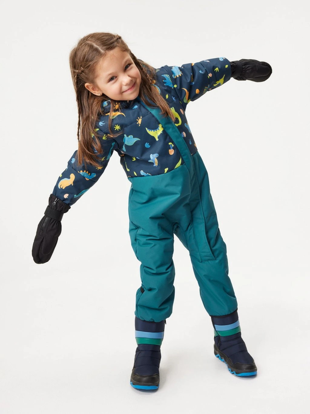 Hravý potisk dinosaurů dodává kombinéze zábavný vzhled, který si zamilují jak kluci, tak holky. Spojení funkčnosti, pohodlí a stylu dělá z tohoto kousku ideálního společníka pro celé chladné období.