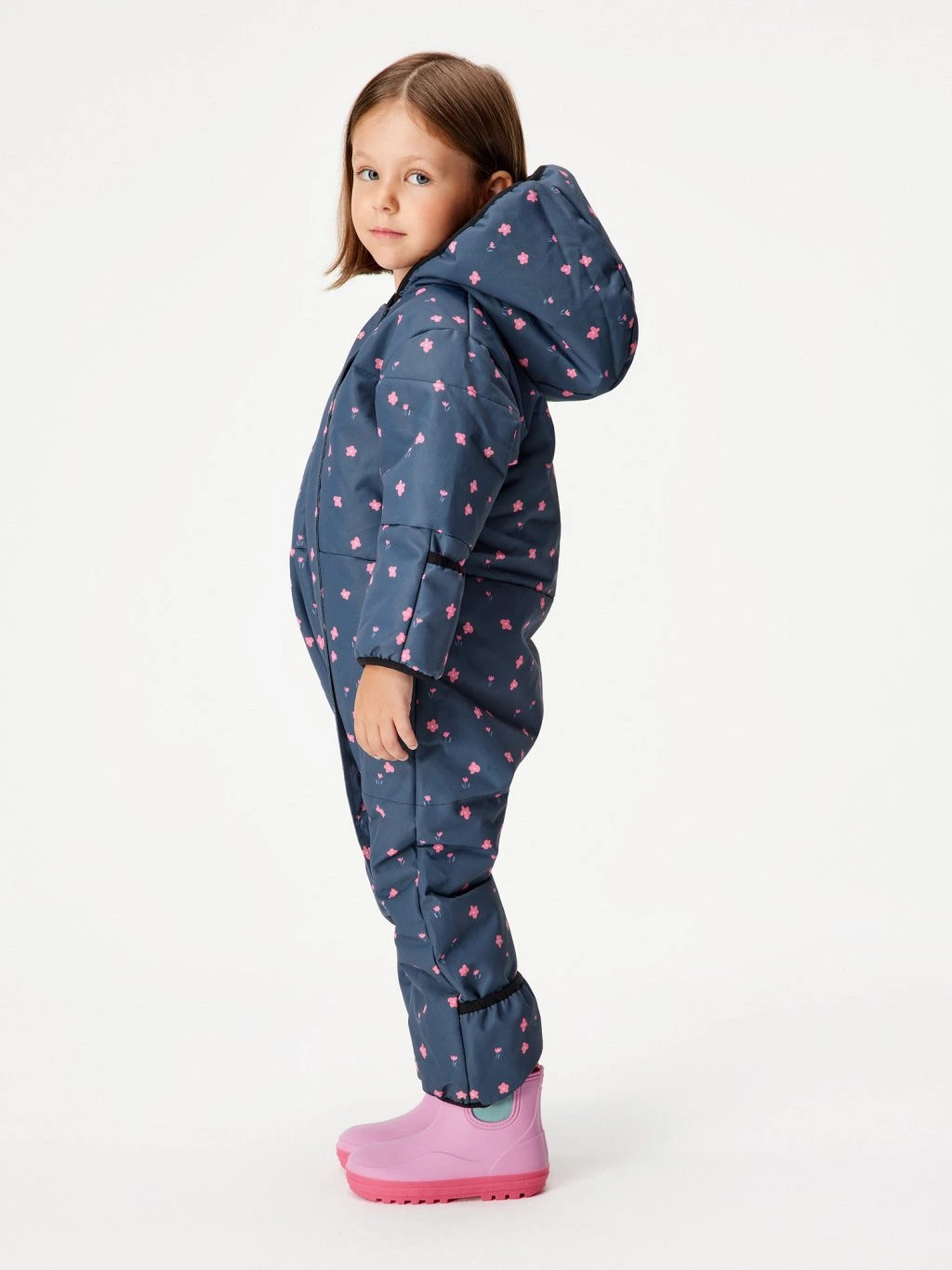 Zanechte starosti ze změn počasí za dveřmi. Tato černá kombinéza s drobným květinovým potiskem je připravena na každou mrazivou výzvu. Pod nepromokavou vnější vrstvou najdeme termoizolační vatelín, který zahřeje i v chladných dnech, přitom nenarušuje volnost pohybu dítěte. Zip po celé délce umožní rychlé oblékání, zatímco přetahovací rukávy a nohavice zaručí, že sníh či vítr nemají šanci materiálem vůbec proniknout. Elastické manžety a kapuce dodávají dodatečnou ochranu a střih je navržen tak, aby umožnil volný pohyb i při aktivní hře.