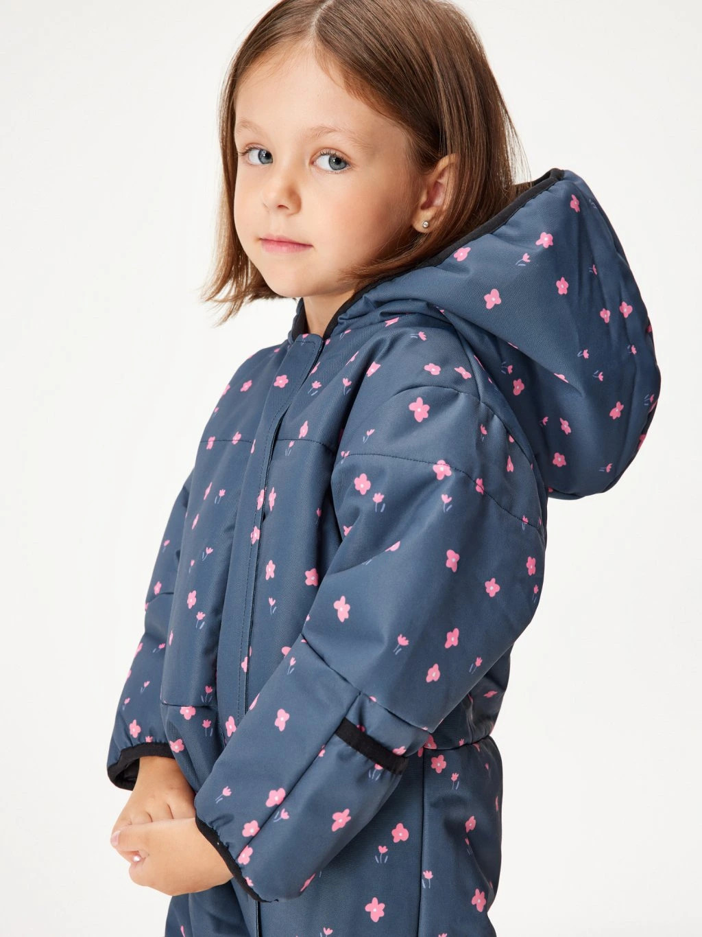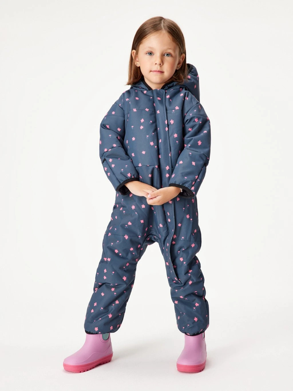 Zanechte starosti ze změn počasí za dveřmi. Tato černá kombinéza s drobným květinovým potiskem je připravena na každou mrazivou výzvu. Pod nepromokavou vnější vrstvou najdeme termoizolační vatelín, který zahřeje i v chladných dnech, přitom nenarušuje volnost pohybu dítěte. Zip po celé délce umožní rychlé oblékání, zatímco přetahovací rukávy a nohavice zaručí, že sníh či vítr nemají šanci materiálem vůbec proniknout. Elastické manžety a kapuce dodávají dodatečnou ochranu a střih je navržen tak, aby umožnil volný pohyb i při aktivní hře.