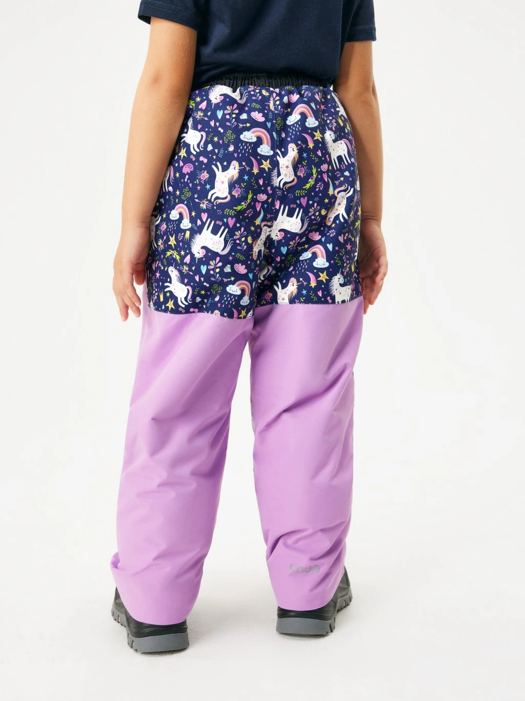 Tyto lila oteplovačky s potiskem jednorožců zajistí dětem maximální komfort a ochranu během zimních her. Termoizolační vatelín udržuje teplo, aniž by kalhoty působily těžce, a funkční materiál s vodním sloupcem 20 000 mm H₂O a prodyšností 10 000 g/m²/24 h zajišťuje suché nohy i při nejnáročnější sněhové zábavě.