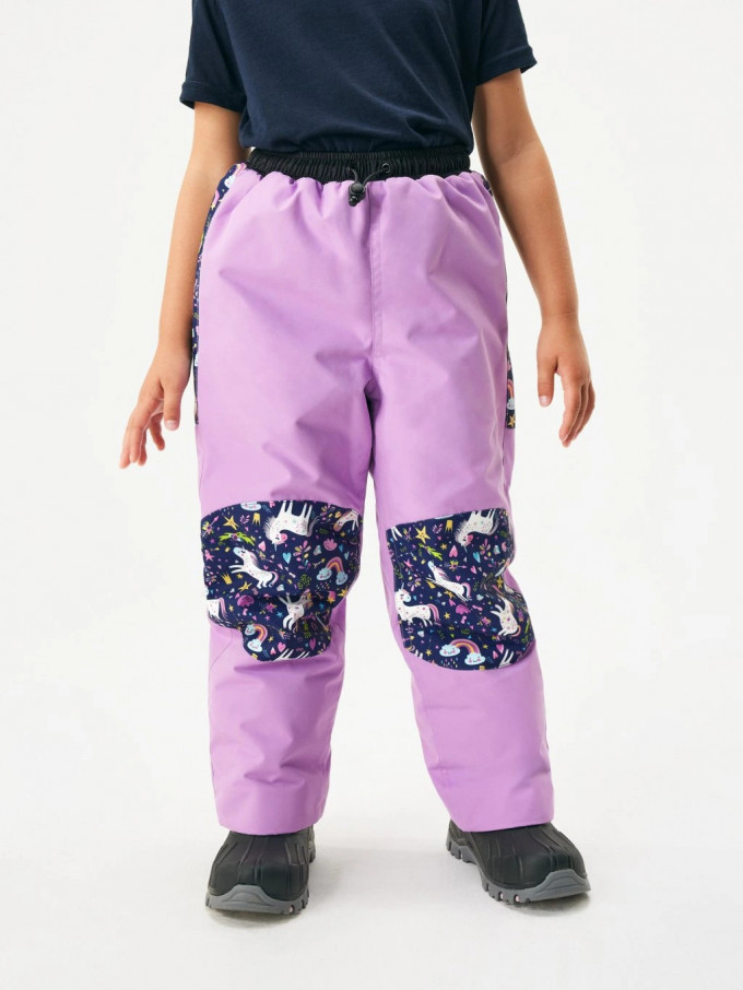 Tyto lila oteplovačky s potiskem jednorožců zajistí dětem maximální komfort a ochranu během zimních her. Termoizolační vatelín udržuje teplo, aniž by kalhoty působily těžce, a funkční materiál s vodním sloupcem 20 000 mm H₂O a prodyšností 10 000 g/m²/24 h zajišťuje suché nohy i při nejnáročnější sněhové zábavě.