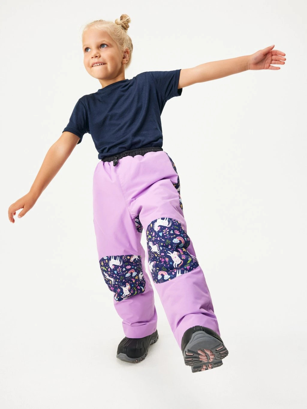 Tyto lila oteplovačky s potiskem jednorožců zajistí dětem maximální komfort a ochranu během zimních her. Termoizolační vatelín udržuje teplo, aniž by kalhoty působily těžce, a funkční materiál s vodním sloupcem 20 000 mm H₂O a prodyšností 10 000 g/m²/24 h zajišťuje suché nohy i při nejnáročnější sněhové zábavě.