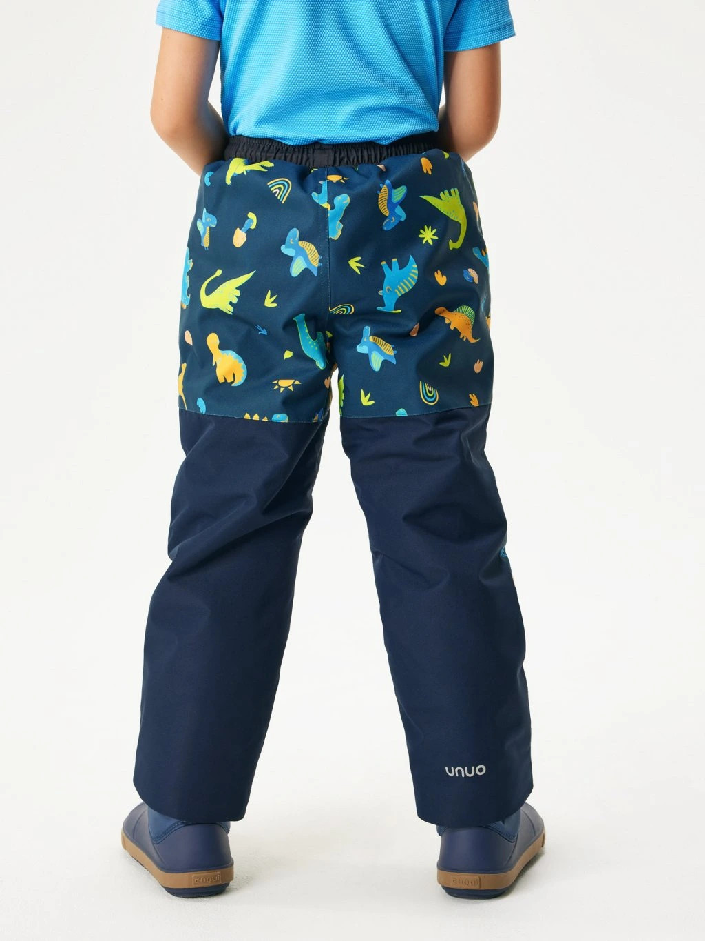 Tyto tmavě modročerné rostoucí oteplovačky s potiskem dinosaurů jsou připraveny na opravdu náročné zimní podmínky. Výplň z termoizolačního vatelínu udrží dítě v teple i při nízkých teplotách, zatímco technická tkanina s vodním sloupcem 20 000 mm H₂O odolá vlhku, mokrému sněhu i plískanicím. Prodyšnost 10 000 g/m²/24 h zase umožní aktivitě bez pocitu vlhkosti či přehřátí. Materiál s úpravou DWR 80/20 zajišťuje rychlé schnutí a je navíc bez škodlivých látek PFAS.